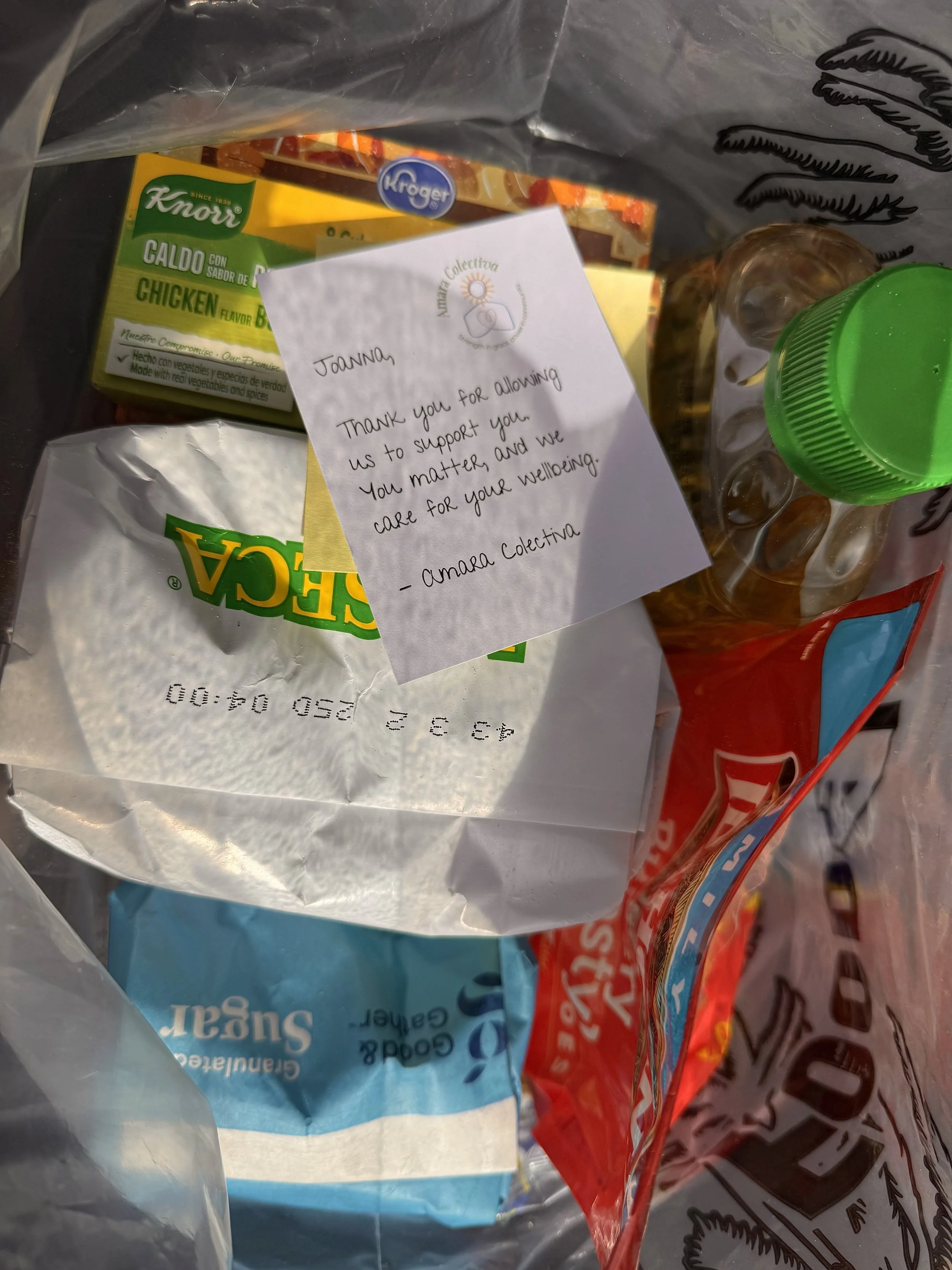 Support may look like groceries, gift cards, essentials, referrals, or simply being present when someone needs to be seen.